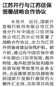 江苏开行与江苏信保签署战略合作协议——《扬子晚报》2011年12月15日财经版报道