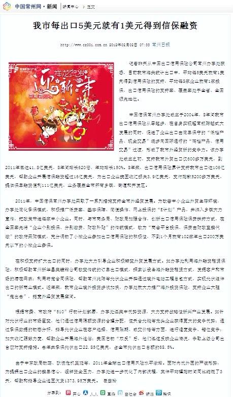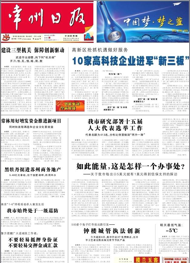 如此能量,这是怎样一个办事处——《常州日报》、中国常州网、中吴网2012年2月2日对常州办事处进行专题报道