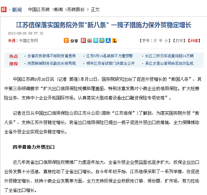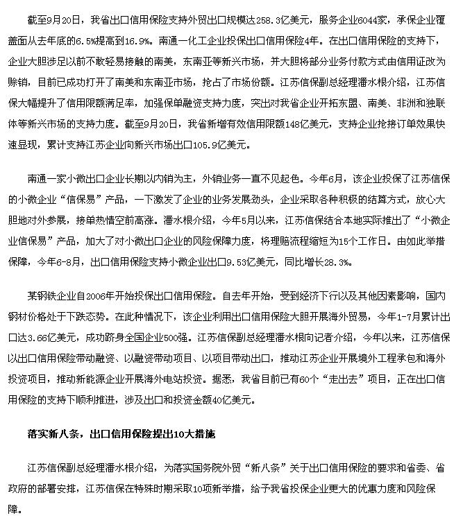江苏信保落实国务院外贸“新八条”一揽子措施力保外贸稳定增长——中国江苏网9月26日讯