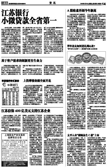 江苏信保400亿美元支持江苏企业——《江苏商报》2013年1月16日要闻报道