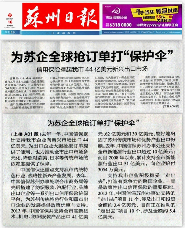 为企业全球抢订单打“保护伞”——《苏州日报》2月16日头版报道