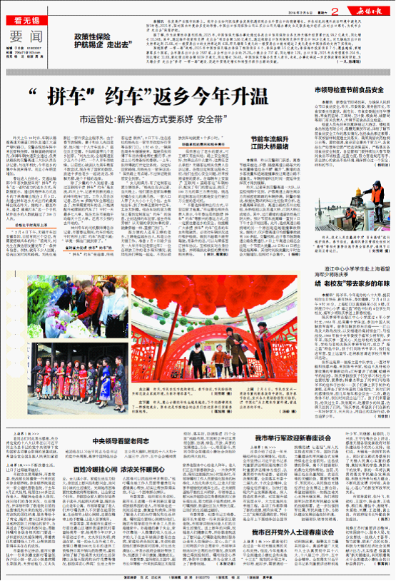 发布时间:2016年2月6日 《无锡日报》总第16516期